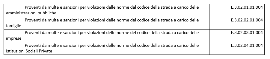 Per la corretta allocazione e codificazione delle entrate derivanti dalle sanzioni previste dal Codice della Strada è necessario fare riferimento al piano dei conti integrato , di cui si riporta di seguito l’estratto relativo alle codifiche di interesse.